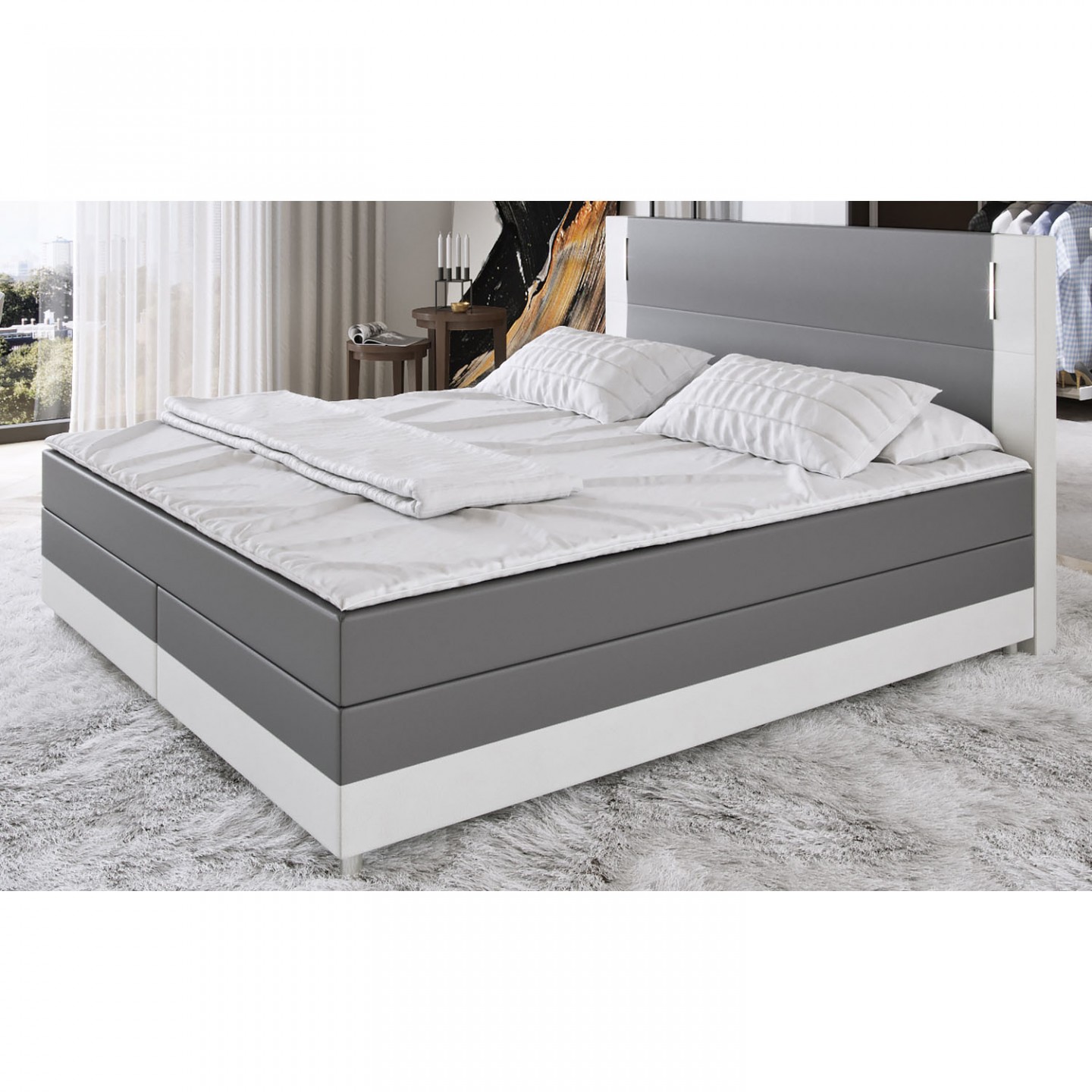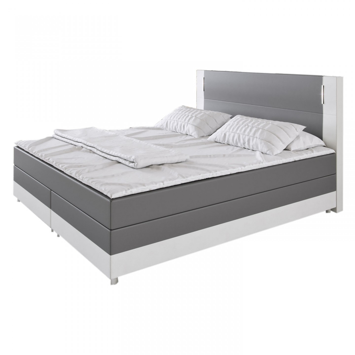 Postel Box Spring Denver s LED osvětlením 140 x 200 cm | tmavě šedá / bílá