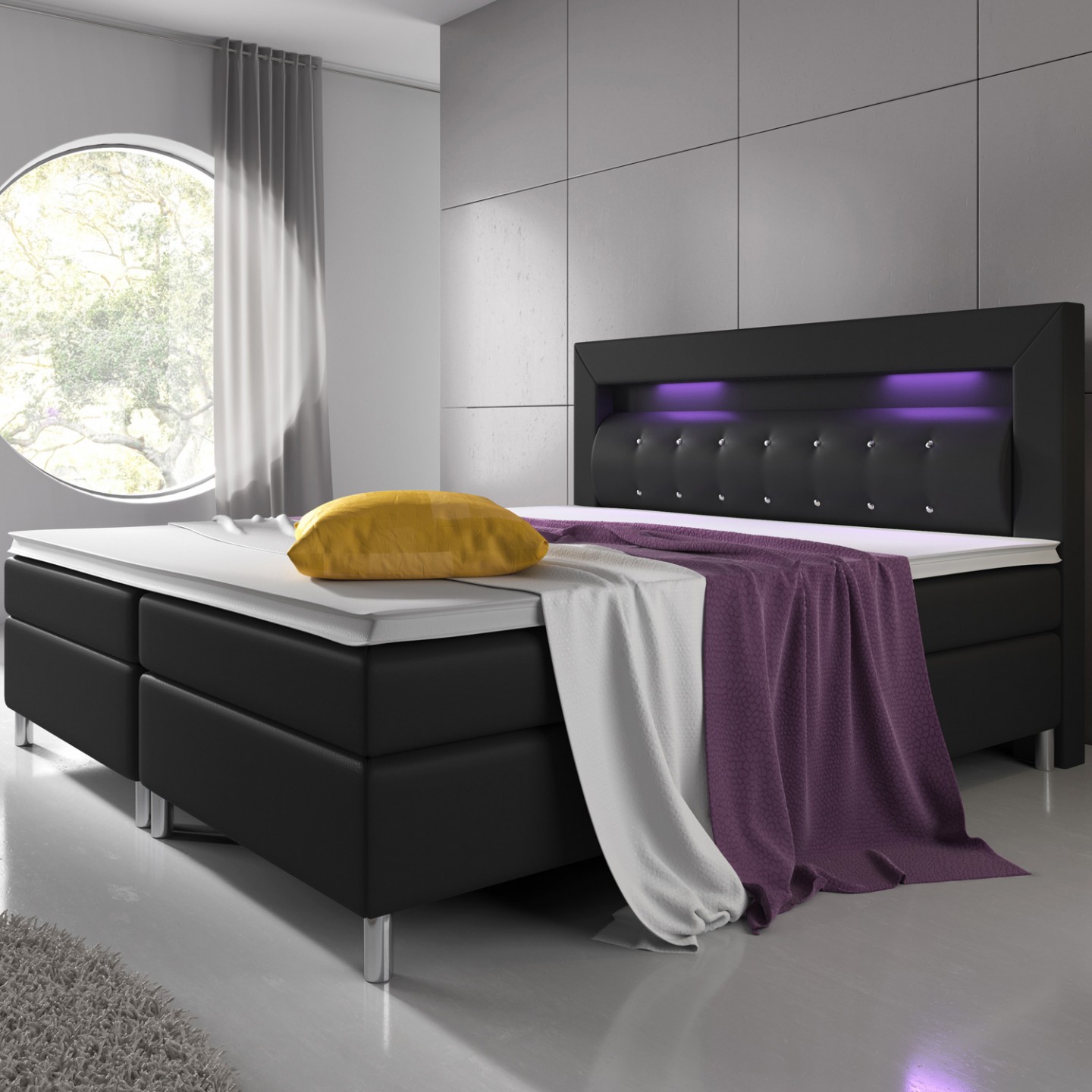 Postel Box Spring Montana s LED osvětlením 140 x 200 cm | černá
