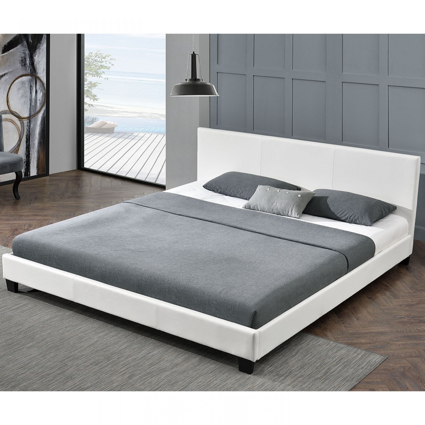 S plochou 160 x 200 cm je čalouněné lůžko vhodné do menších ložnic. Rám postele je pečlivě zpracován, to poskytuje lůžku vynikající stabilitu. Imitace kůže celkově odolává většímu zatížení.