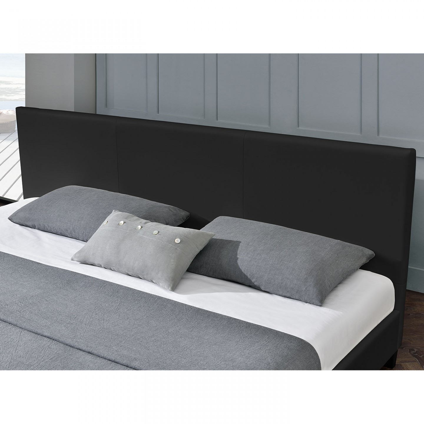 S plochou 160 x 200 cm je čalouněné lůžko vhodné do menších ložnic. Rám postele je pečlivě zpracován, to poskytuje lůžku vynikající stabilitu. Imitace kůže celkově odolává většímu zatížení.
