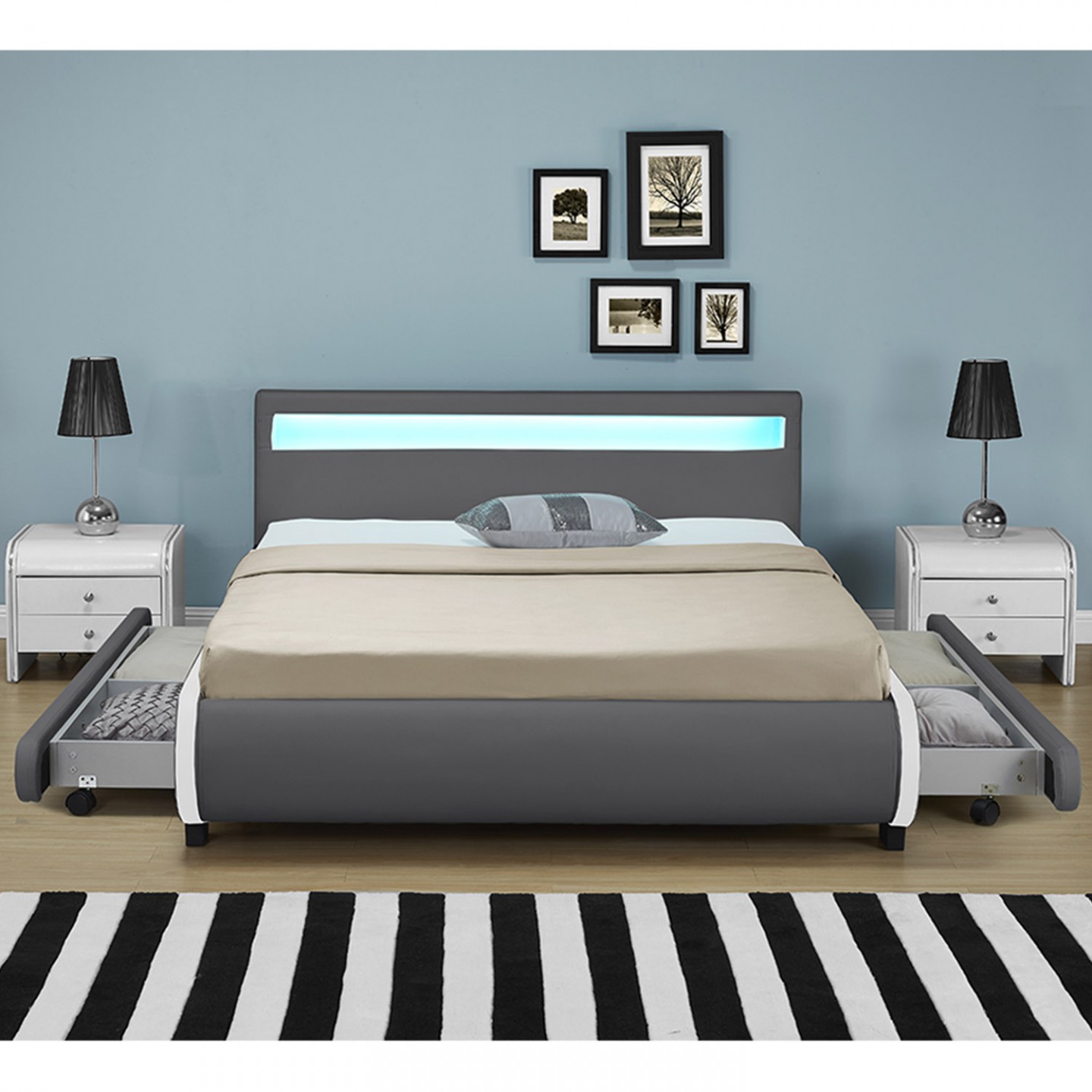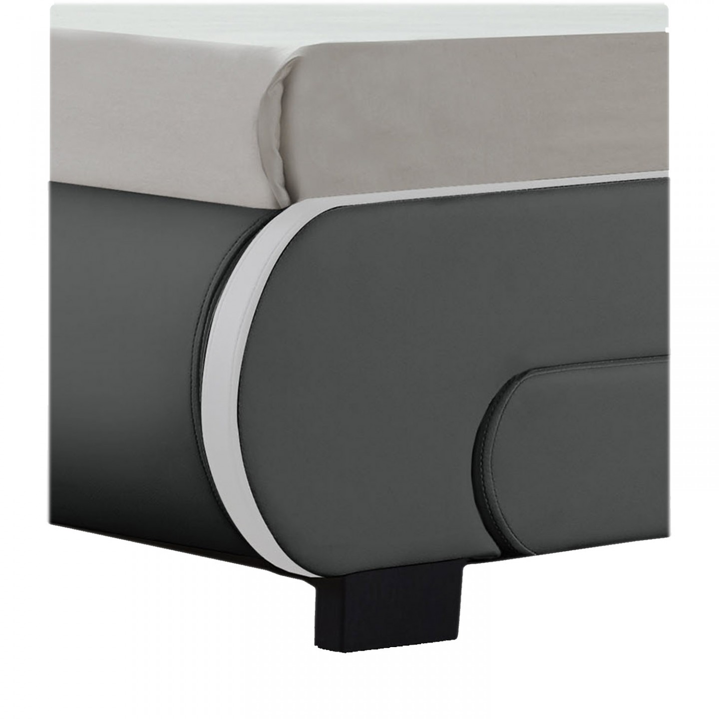 Moderní čalouněná postel s koženkovým čalouněním s jednoduchou péčí Vám připraví sladké sny a klidný spánek. LED osvětlení instalované podél čelního panelu poskytuje příjemné světlo a rozšiřuje do ložnice velmi zvláštní kouzlo. Světlo můžete ovládat dálkově a nastavit jas i barvu podle nálady.
