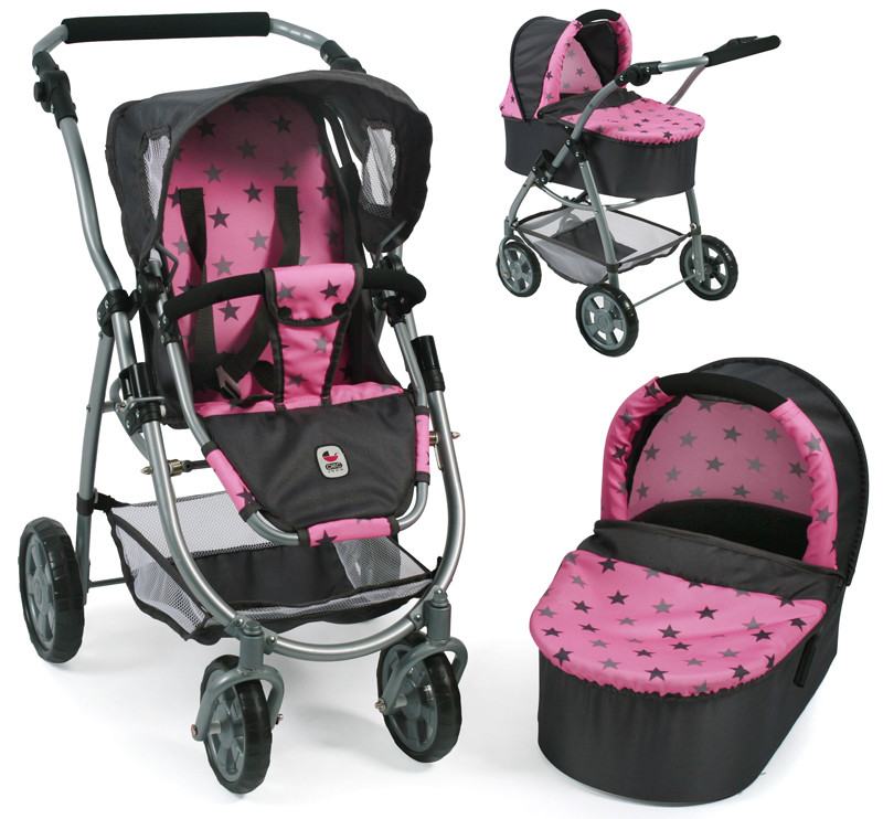 - Moderní kombinovaný kočárek pro panenky - hluboká korba a sportovní sedačka