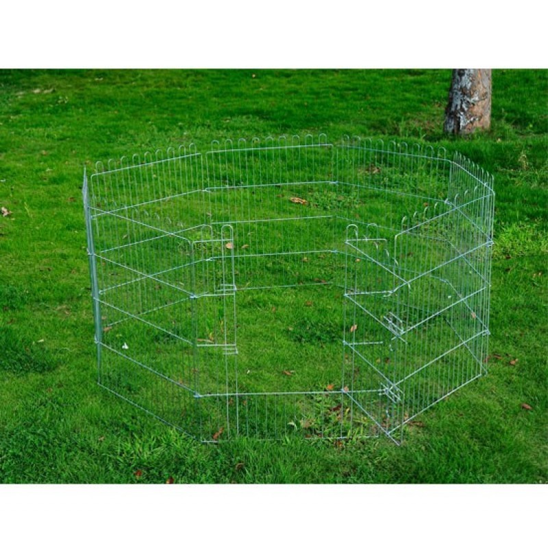 Venkovní výběh umožňuje štěňatům si bezpečné hrát na čerstvém vzduchu. Výběh, který je vyrobený z kovu je vysoce kvalitní a poskytuje mláďatům v každém okamžiku optimální přívod vzduchu. Výběh je složen z 8 dílů, které lze snadno a rychle variabilně smontovat a demontovat. Snadno se čistí.