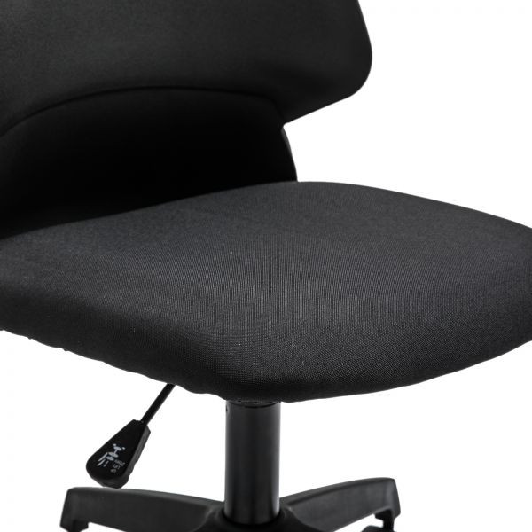 Jednoduchý design, atraktivní černá, stylově a ergonomicky tvarované opěradlo, které podporuje vaše záda, aby jste se cítili pohodlně a zdravě. Kancelářské křeslo je zakončeno robustní základnou s 5 kolečky.
