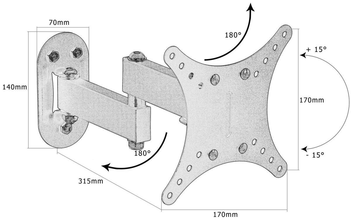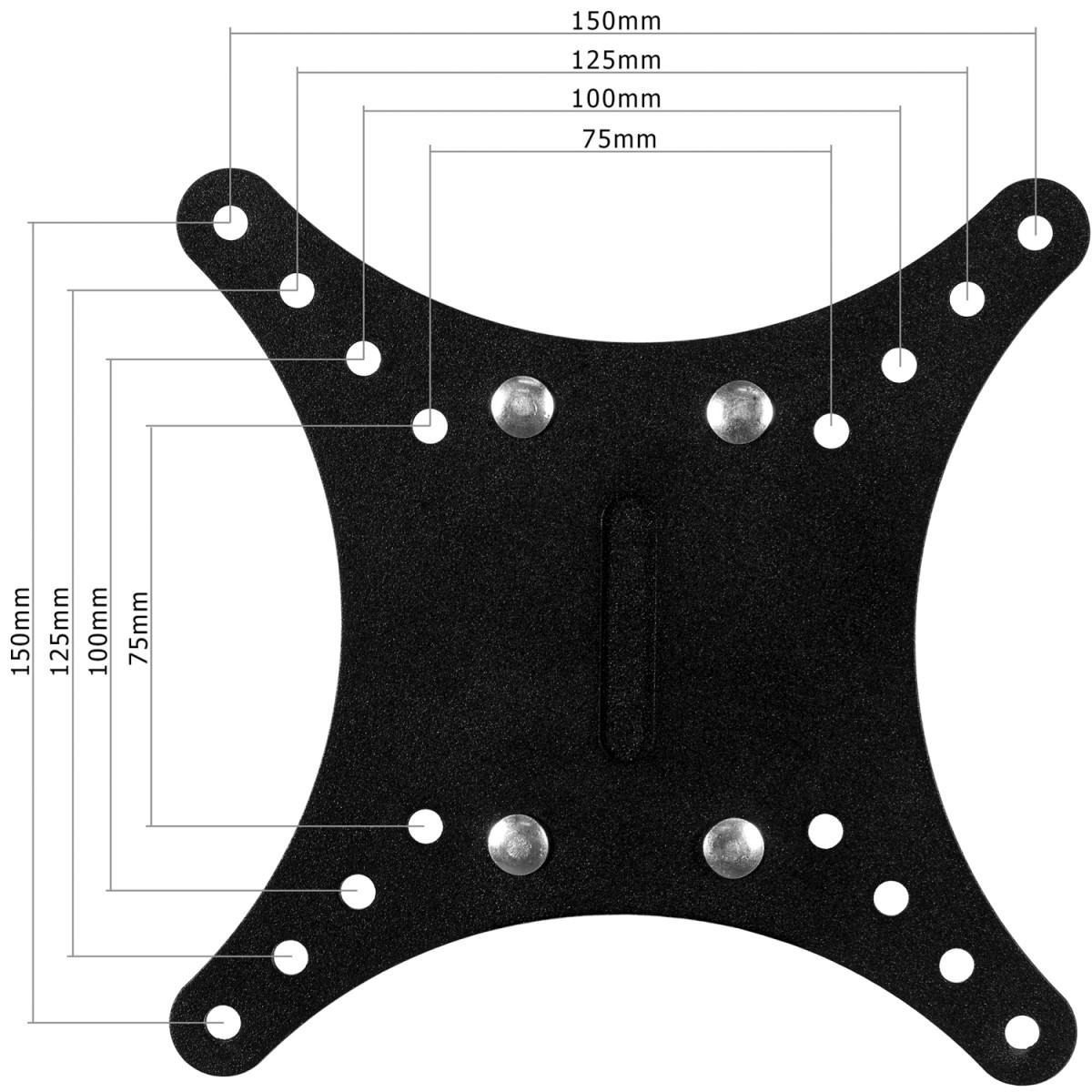 Tento nástěnný držák je kompatibilní s těmito normami VESA: 75x75 / 100x100 / 125x125 / 150x150.