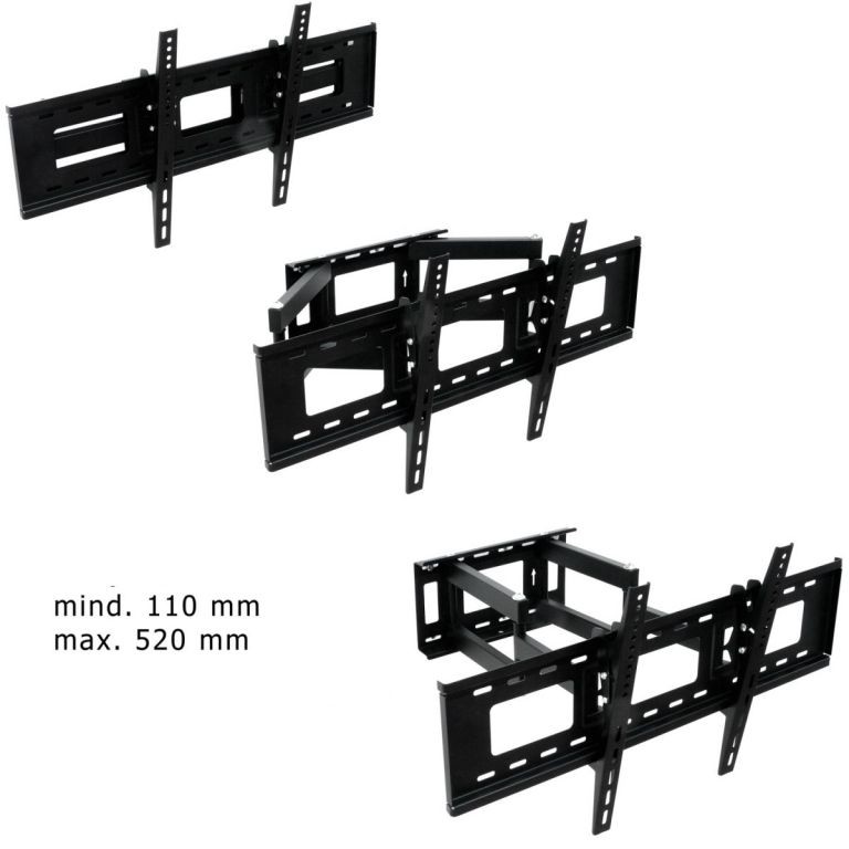 Nástěnný držák Mounty® je díky svým rozměrům a nosnosti opravdu univerzální. Držák lze použít pro LCD monitory a televizory o úhlopříčce až 66" (167,6cm) a hmotnosti do 100kg. Televizor můžete umístit do rohu místnosti díky výklopným úhlům a díky výkyvným ramenům ho oddálit od stěny až na 52cm. Držák lze pootočit do stran o 45° a sklopný úhel nahoru a dolů je 15°.