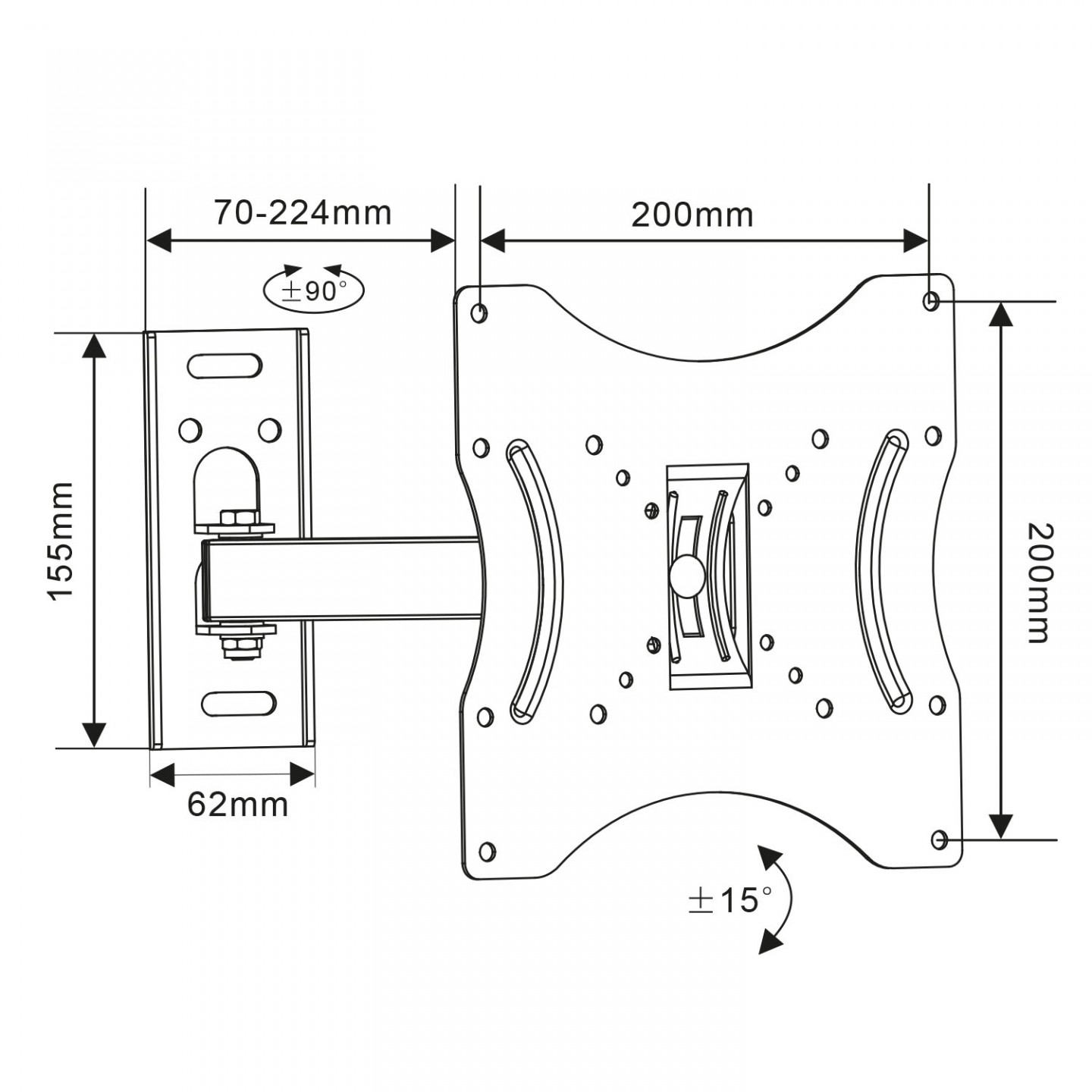 Tento nástěnný držák je kompatibilní s těmito normami VESA: 75x75 / 100x100 / 200x200