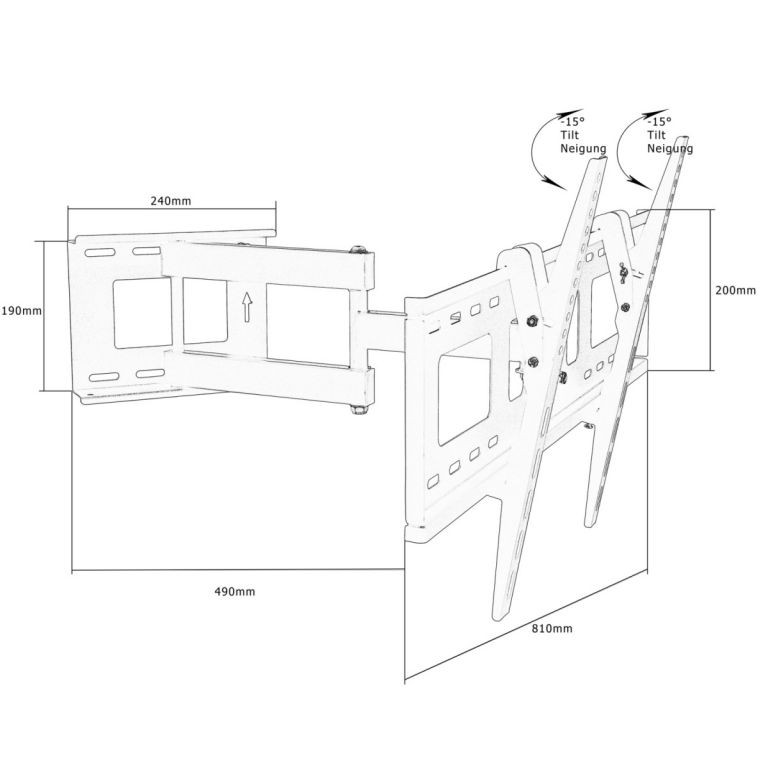 Nástěnný držák Mounty® je vhodný pro všechny typy plochých televizorů o velikosti 26" až 66". Televizor lze díky výkyvnému rameni otáčet doprava a doleva až o 90° a dolů o 15°.