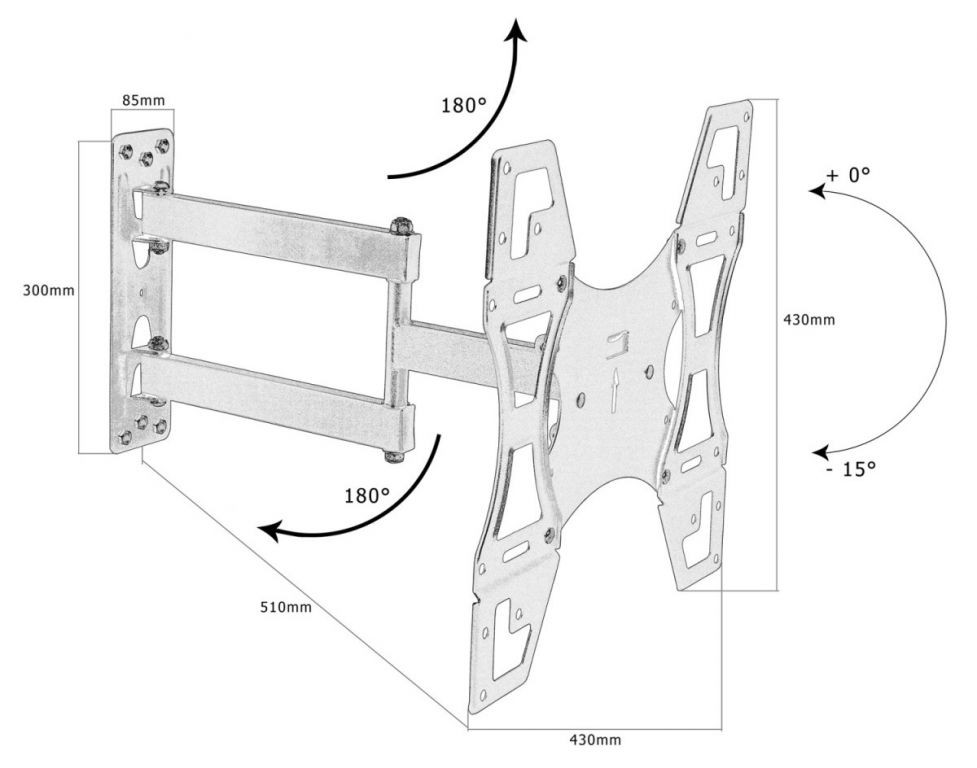 Tento nástěnný držák je kompatibilní s těmito normami VESA: 75x75 / 100x100 / 150x150 / 200x100 / 200x200 / 400x200 / 300x300 / 400x300 / 400x400.