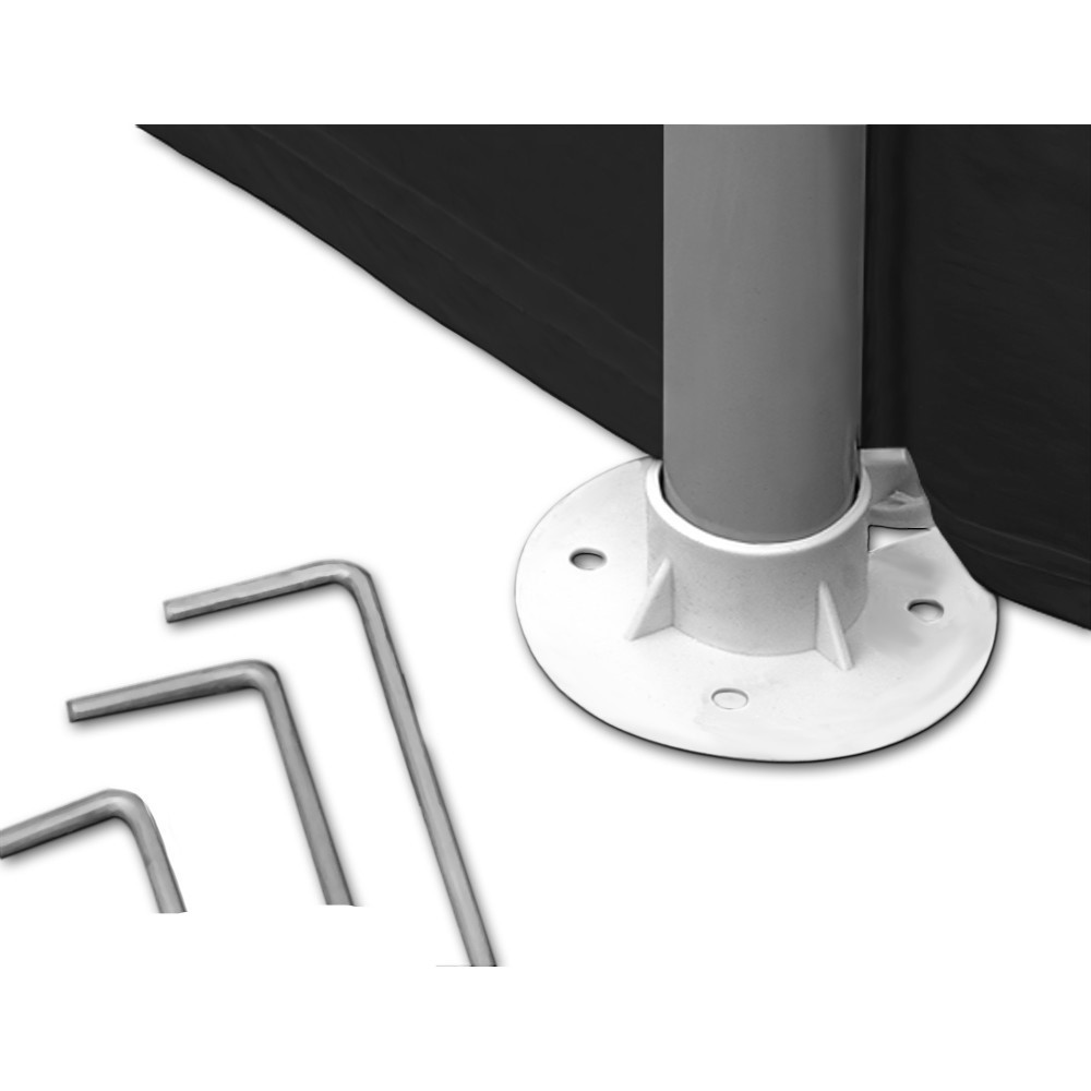 Postavený stan je nutné řádně zavětrovat pomocí kurtů. Pokud není zavětrovací sada součástí stanů, je potřeba sadu dokoupit na vlastní náklady.