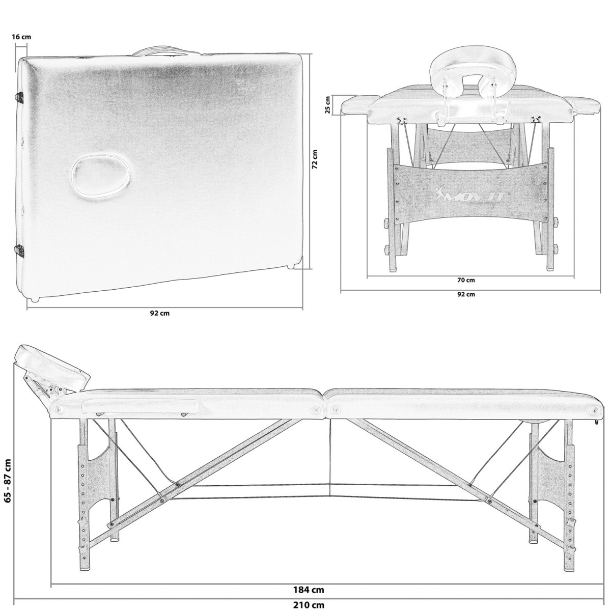 Přenosné masážní lehátko MOVIT 184 x 70 cm, bílé