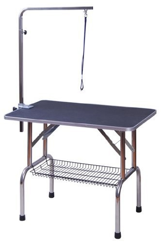 Náš stříhací stůl je ideální jak pro domácnosti, tak i pro profesionály ve stříhání psů. Stůl je skládací, takže jej můžete použít na výstavách a pod. Stůl má protiskluzovou povrchovou úpravu a ocelový rám s práškovým nástřikem. Konzole pro připnutí obojku je nastavitelná. Stůl má široké využití a přinese pohodlí jak Vašim miláčkům, tak i Vám. Deska stolu s protiskluzovým gumovým povrchem zajistí pohodlný povrch pro Vaše miláčky a snadno se desinfikuje. Robustní konzole nejvyšší kvality pro připnutí obojku je výškově nastavitelná a ergonomická. Smyčka konzole udrží mazlíčky v klidu na místě a má vylepšený způsob zapínání.