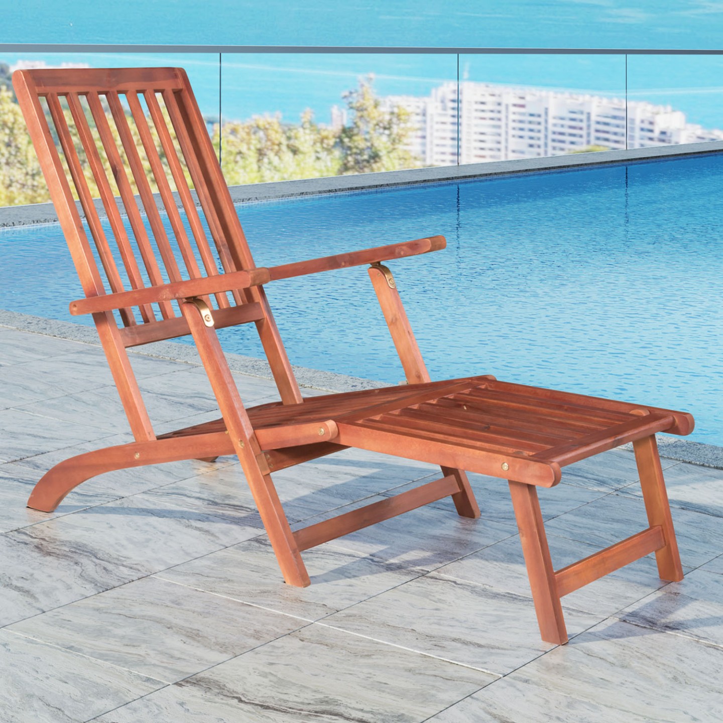 Zahradní lehátko vyrobené z akáciového dřeva, které bylo ošetřeno přírodním olejem je krásným doplňkem pro Vaši zahradu, terasu nebo balkon. Vyznačuje se vynikající odolností proti povětrnostním vlivům. Proto je naše opalovací lehátko velmi vhodné pro venkovní použití.
