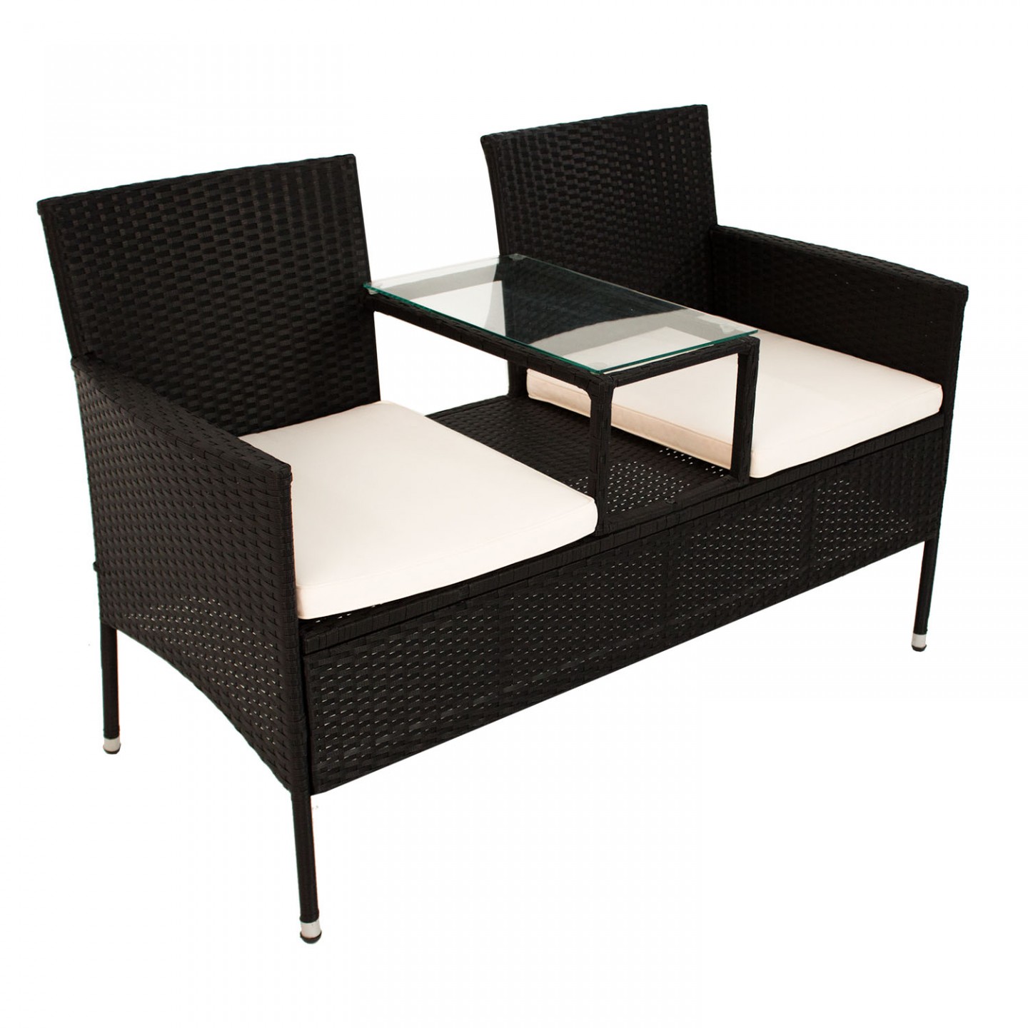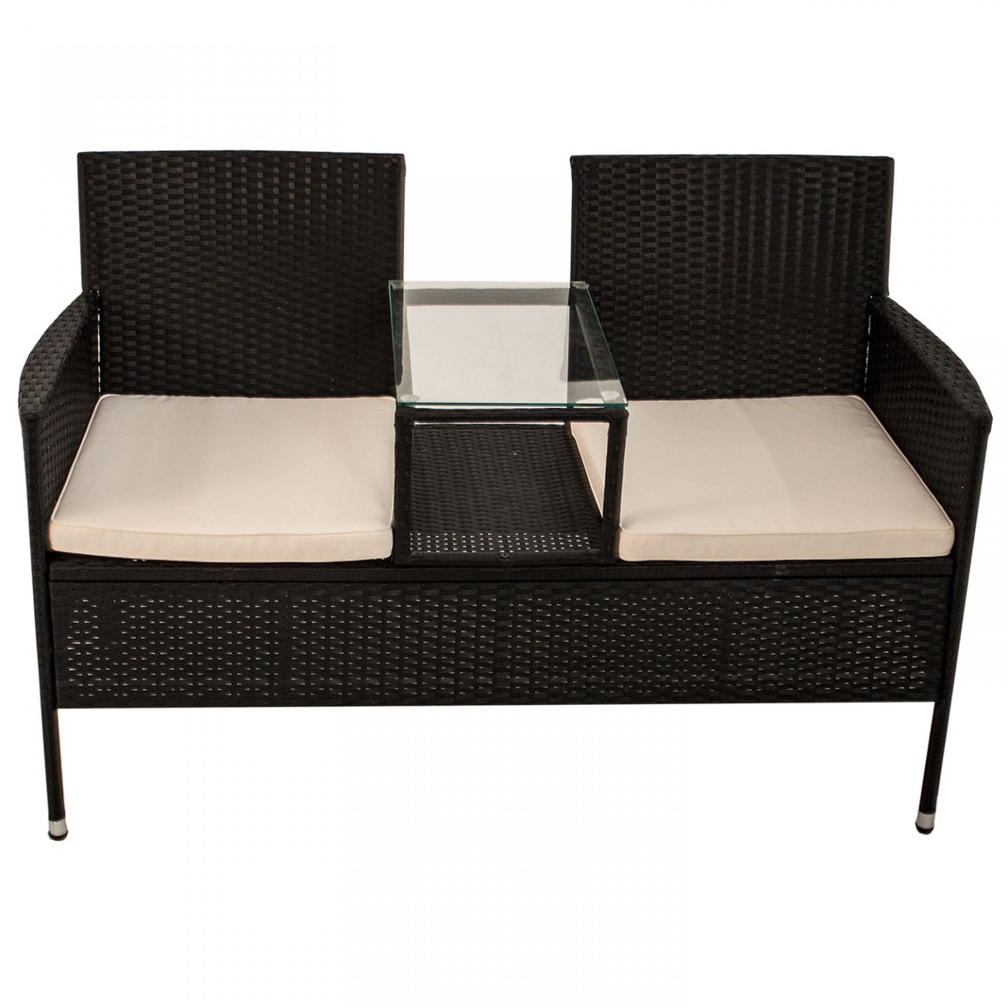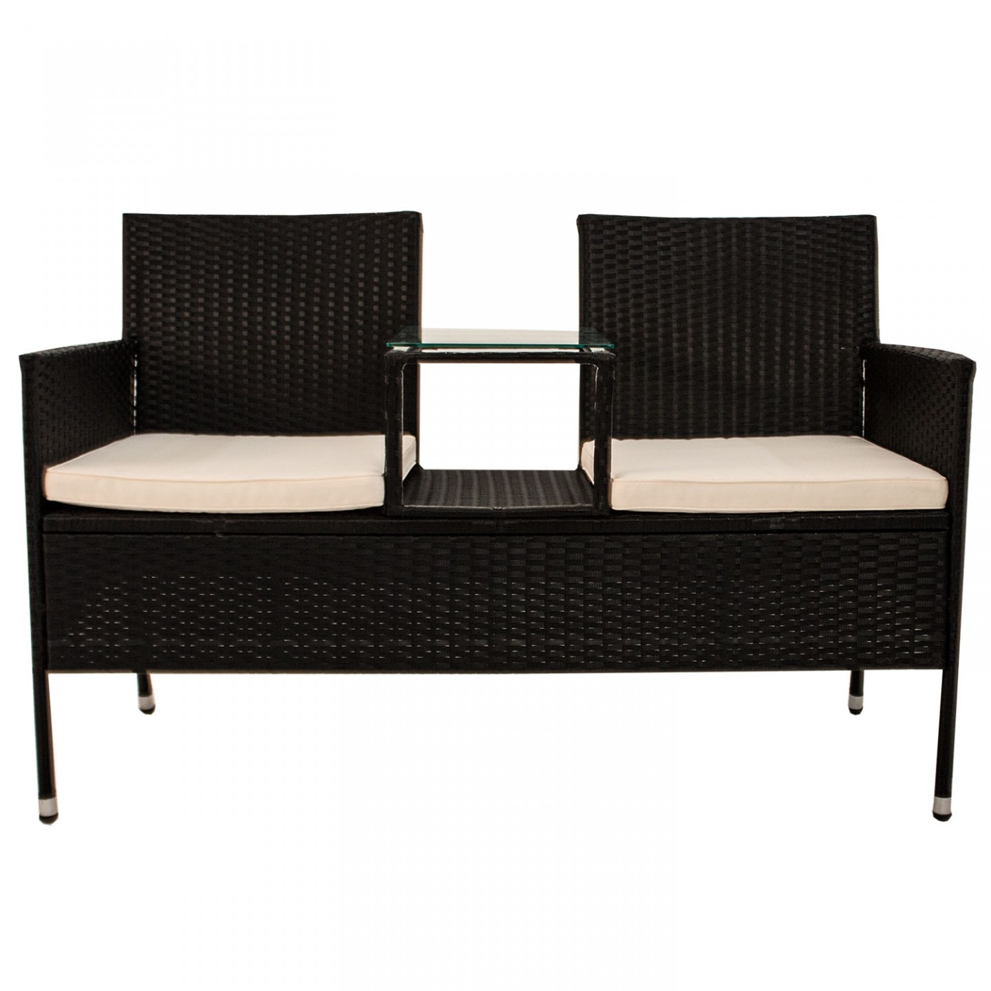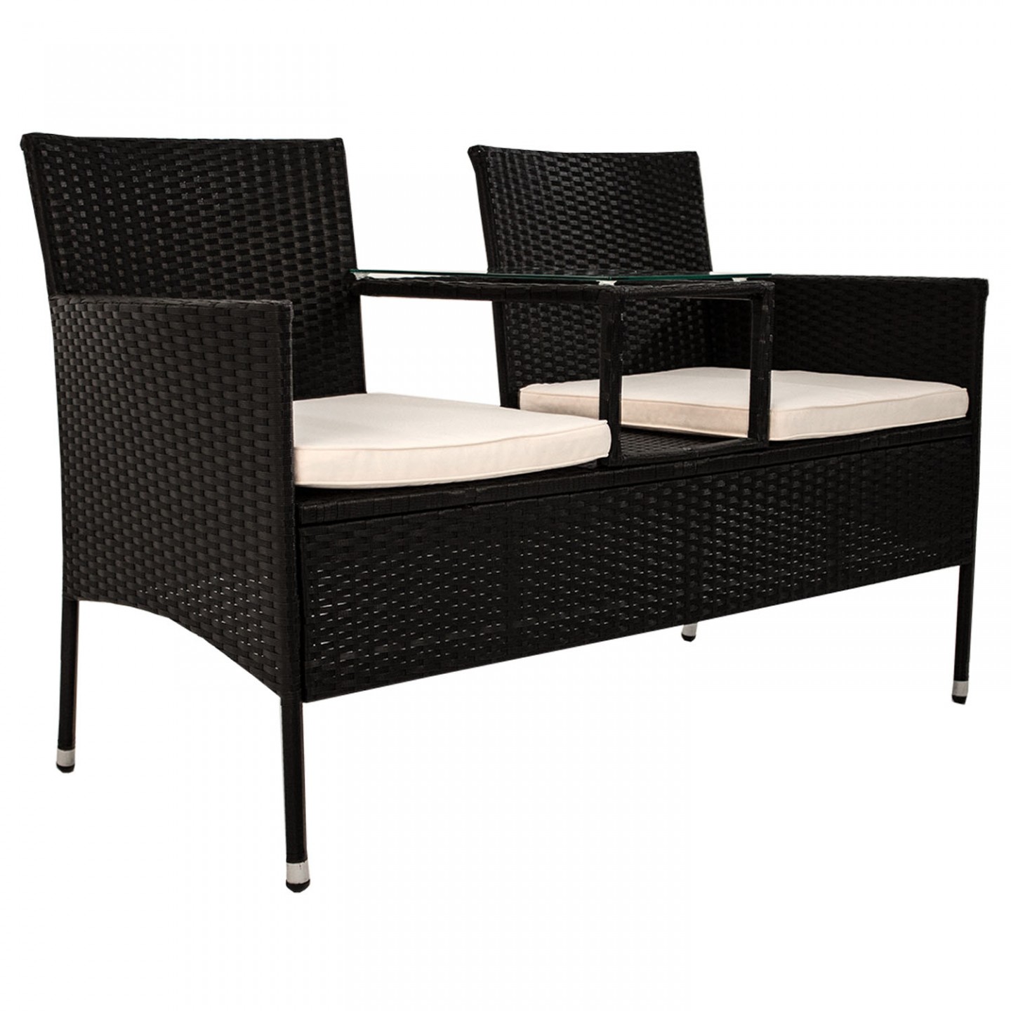 Zahradní polyratanová dvoumístná lavice Monaco se stolkem | černá